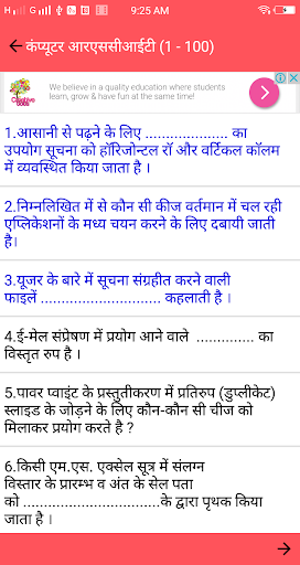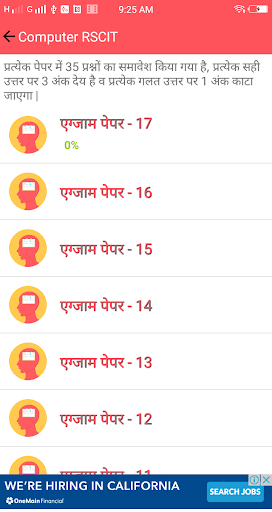 This app contains 17 Exam papers with 35 questions each. This RSCIT Hindi App has 500 RSCIT computer exam old question papers.