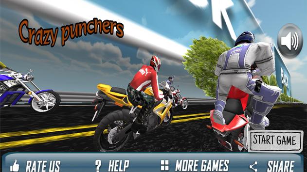 Crazy Punchers is great fun to play when you start it playing with any of your selected biker or bike, you won't get bored to it. It has packed so much fun with unlimited entertainment that will make you enjoy while riding bike. You have to kick and punch your opponent biker as well as destroying cars one by one that comes in your way.