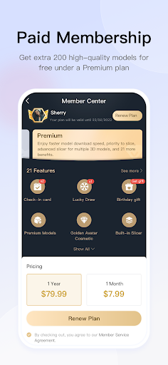 ● Enjoy faster model donwload speed, priority to slice, exclusive redeem products, unique birthday gifts, and more benefits.