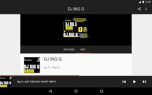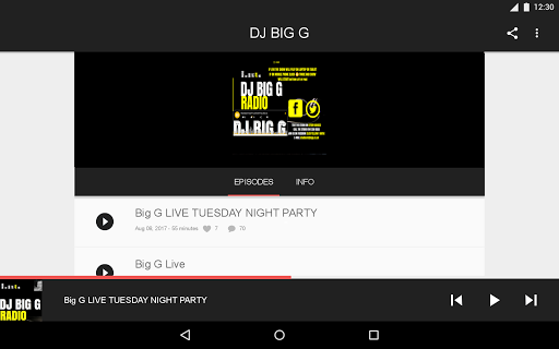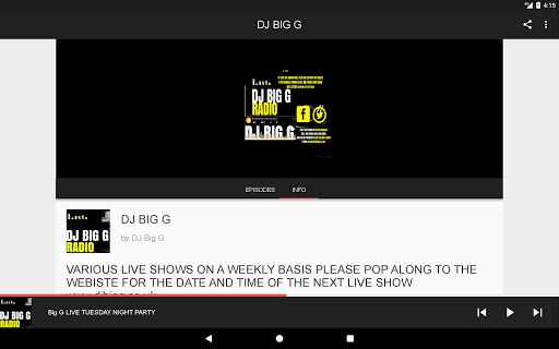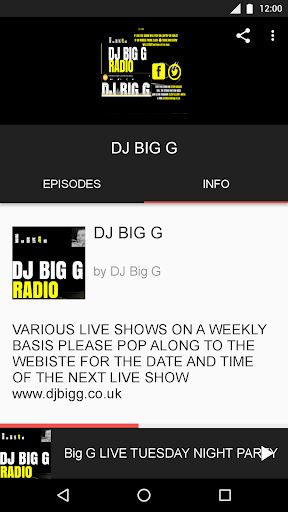 Great app for listening live to Dj Big G live and to listen back to previous shows