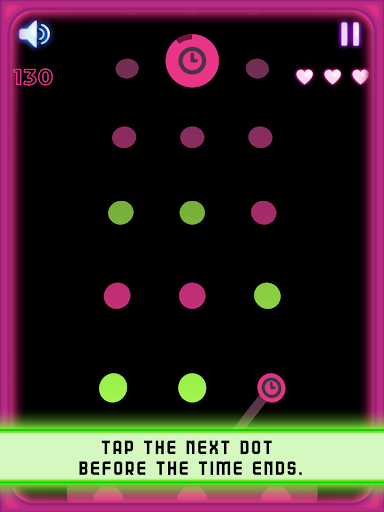 There are some rules of connecting the dots in this crazy dot run game. You have 3 lives at the start of the game indicated by 3 hearts at the top, Clicking a dot of the wrong color makes you to lose a life and also if you don’t manage to tap the next dot before the time ends also makes you to lose a life. Once you lose all your 3 lives in dot puzzle and pin the dot, the next mistake will result in a game over. In dot to dot for adults and connect draw game, Level is sub-divided into layers, each layer holds 3 dots of random colors, you can only click on the dots of the next layer than the one you are currently at. Everyone in a while “Color Bar” will be generated, tapping this layer will result in a switch of the current Color in join the dots and dot running game.