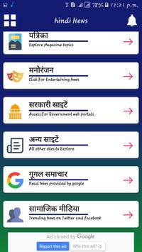 Get easy access to all Hindi News sources. In this application you can read all the major hindi language based newspapers and news website on your mobile screen with easy access. You can the latest news headlines from the leading hindi News web portals. You can also get the list of major social media pages published like Fb, twitter in same application.
