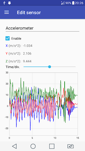 If data is transferred to the same server from many mobile devices, then device id (UUID) can be assigned to the transferred data. The id can be generated automatically or manually. Data Collector isn't limited by data collection from mobile device internal sensors and develops so-called guest sensors kit. In the current version of the App the following guest sensors are presented: