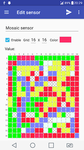 • Mosaic sensor that presents a frame of any size, where any required color can be assigned to any cell.