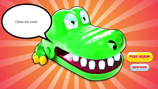 Can't decide who's turn it is to wash the dishes or time to clean the toilet? Mr. Crocodile will help you out!