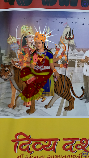 Enjoy live 4D Swaroop of Maa Ambaji Pop-up from that photograph (bought from Divya Darshan) and share Darshan with others at home too, with Audio.
