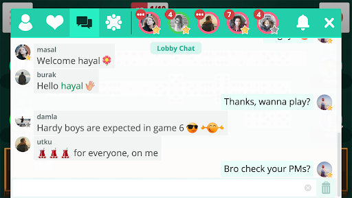 You can meet new people, chat and make friends. You can play games with your friends. Lobby, table and private chats are at your disposal. You can easily write your messages using dictation without using the keyboard. With premium services, you can customize your membership and you can be different.
