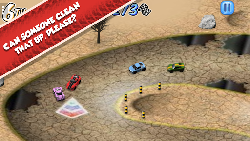 On the track you don’t only have to avoid crashing into your opponents, but avoid obstacles as well. Depending on the race track you will encounter oil puddles and frozen surfaces. Both of them will temporarily even more reduce the grip of your already sliding car.