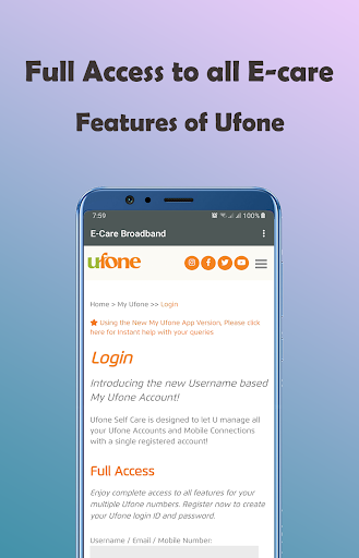 Ufone eCare is designed to let you manage all your Ufone Accounts and Mobile Connections with a single registered account. Enjoy complete access to all features for your multiple Ufone numbers by ecare Ufone. Register now to create your ecare Ufone login ID and password. Download the app to enjoy a wide range of Ufone e-care services like checking your Ufone Call History in an easy way to download ecare. Requesting your Ufone Tax Certificate, and so much more.