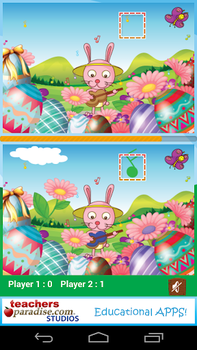 Find the 5 differences between the 2 colorful Easter and Spring-time images before the clock runs out! The available two player mode allows children or adults to challenge each other to see who is able to find the difference fastest. This app is sure to provide hours of educational fun for all ages.