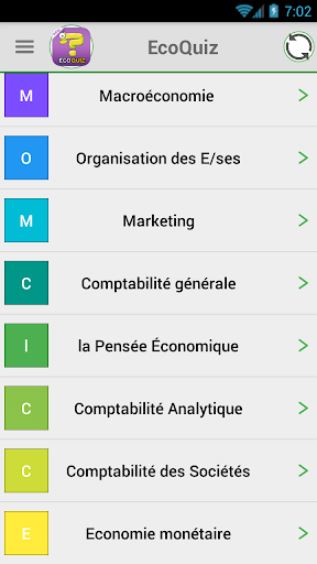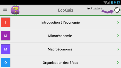 NB : les Mises à jour sont régulières avec de nouveaux QCM, il vous suffit de cliquer sur l’icône à droite en haut de l’application pour actualiser les données de temps en temps .