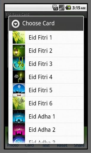Sélectionnez n'importe quel modèle de carte EID FITRI / EID ADHA / RAMADAN / GENERING Créez d'abord votre carte en insérant des mots de photo et de parole.
