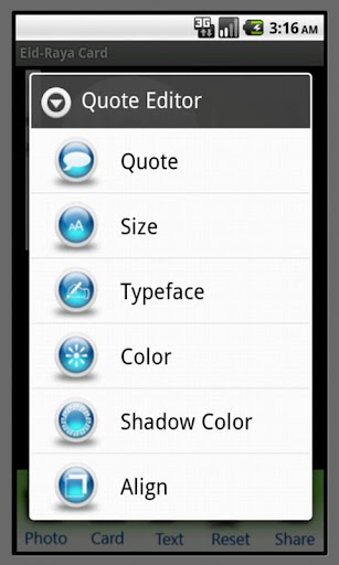 Faire et envoyer des cartes EID / Raya à des amis et à la famille via MMS, Facebook, Twitter, Email ou tout outil de réseau Autre social sur votre téléphone.