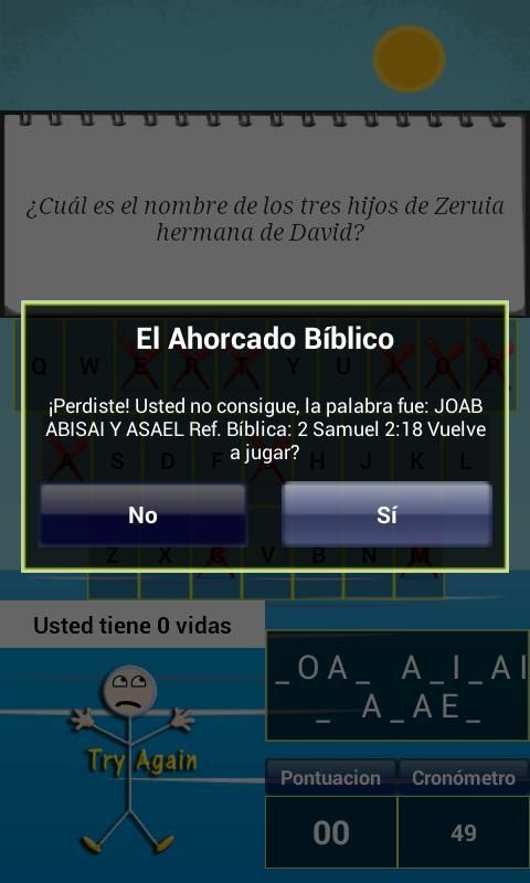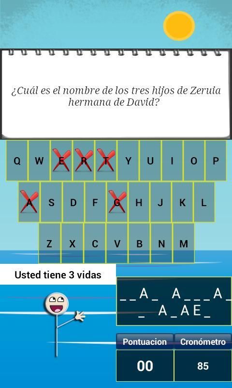 This is a biblical version of the popular game "Hangman" You'll have to guess the words or phrases "more than 170". The main objective is to find the word or phrase that is in the Bible, you must select the letters of the alphabet, if the word appears in the hidden word falling into place, if not, have a negative,