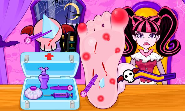 She is a monster and fairy girl,She is very good at using her magic. But sometimes she is very careless, so she often hurts. Today they have P. E on the playground,but the girl wants to play with her boyfriend ,so she tries to skip class. When she jumps over the playground railing,her shoes drops side .So her feet hurt very hard. She had to hop along and went to see a doctor. Look,she needs medical attention at once,but she is very afraid of the pain. Girls,I know you are a very kind and good doctor. Can you accompany her and help her ?I believe it’s very easy for you . After clean the wound,you should give her a foot massage ,because she sprained her ankle by accident. You know,she is a very fashion girl,so don’t forget to make her feet more beautiful. She will very grateful to you. And I believe you will like this new girls games. Come on!