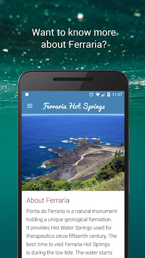 Ferraria Hot Springs is an application that provides information about the hours during which the water is hot and enjoyable at Ponta da Ferraria, on São Miguel Island, Azores.