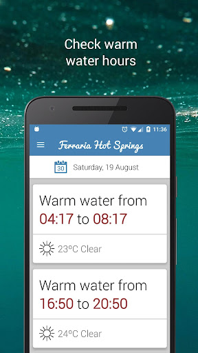 The app also provides the weather condition for each time period when the water is good for bathing as well as an alert about the moment around which the water might be too hot.