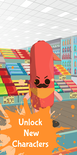 Surf the floor to avoid getting squashed by food falling from the supermarket shelves.