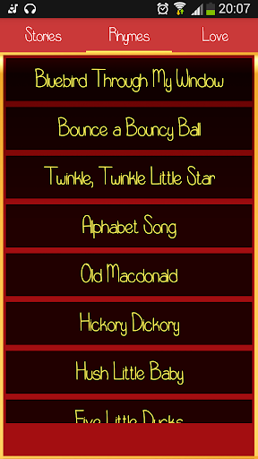 In case we could not find the appropriate script we provided the closest one. The rhymes segment has a lot of rhymes for bedtime or play time with looping functionality, so the kids can learn and enjoy it without the need for an adult.