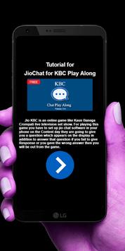 JioChat for free KBC Play Along Pro 1.0.1 Tips is an online game, such as a live TV show Kaun Banega Crorepati. To play this game, you must install the jio chat application on your phone on the day of the content, which will give you a question that will appear on the screen, and you must answer this question, if you did not answer or did not give the wrong answer, then you exit the game.