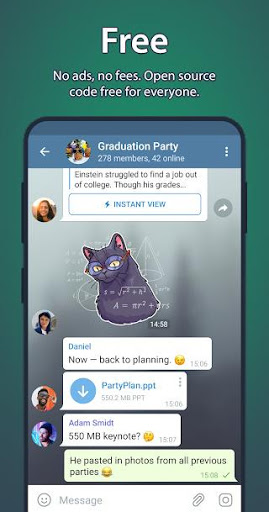 POWERFUL: You can create group chats for up to 200,000 members, share large videos, documents of any type (.DOC, .MP3, .ZIP, etc.), and even set up bots for specific tasks. It's the perfect tool for hosting online communities and coordinating teamwork.