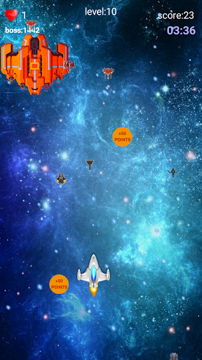 The game is full of unique space adventure! Each new level gives you an access to new enemies and fighting scenarios. You can level up your spaceship and grow stronger!