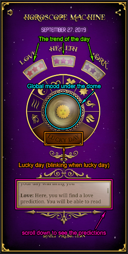 Then click on the ▶ button to start the animation. Then you can discover your horoscope of the day and what you can expect.