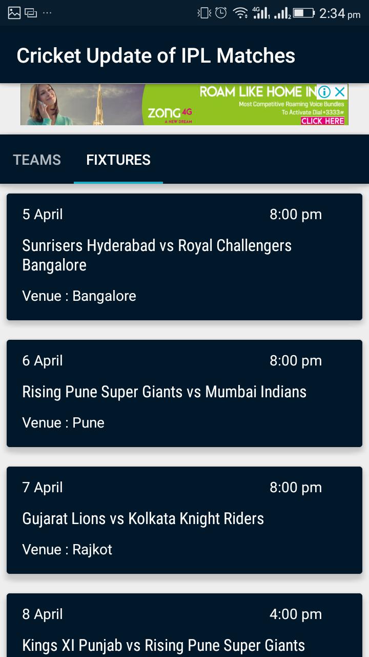 If you are cricket and IPL lover, this application is will provide you the latest update of INDIA Matches which included: