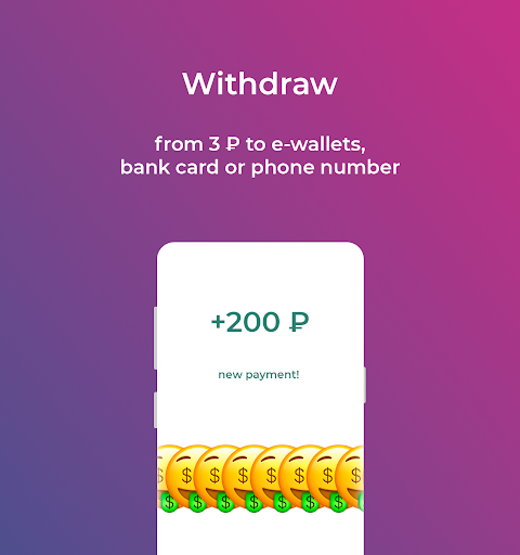 Withdrawal to WebMoney, Payeer, Yandex.Money, QIWI, Visa/Mastercard, PerfectMoney and AdvCash. The minimum withdrawal amount is from 3 rubles.