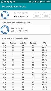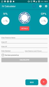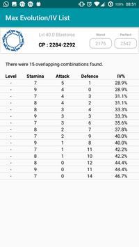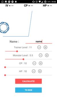 - Save and store an unlimited amount of calculations. If you power up/evolve and store the calculations together, the overlapping combinations will be automatically found to narrow down the IV%/CP% range for greater accuracy.