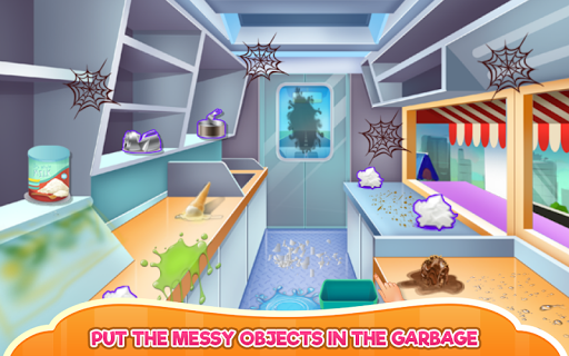 You are famous for your delicious home made recipe of ice cream and the whole town knows that when your truck is open for serving everybody is a little bit more happy once they eat your iced sweets. And as your reputation of the best baker is the most important thing, you like to have your stuffs in order for each client. This cooking game provides a virtual experience for this story and you are actually right now in a lot of trouble because your truck is a mess, your ice cream is not ready and the required ingredients are missing from your place. So, do not panic and try to see this as a challenge where you will learn how to get the best from a bad situation. First comes the cleaning part and you need to used the tools you have to remove all the spots and dirt that accumulated during the other day. Use the spray for window to get it all shiny again, then clean the floor, collect the garbage and throw again the unnecessary ingredients. When you are done you just have to move to next phase. This is where you will find the needed ingredients for your delicious food. Look closely and match the shapes from below with the ingredients you have found. Be careful thought because you might click on the wrong spot and that will cost you points. Finish this and go to the cooking itself. You have to make a dough for the cone of ice cream, put the asked ingredients in and mix them well. Use the machine that transform the dough into a cone and also add that special cream in the other device that will make ice cream. Add topping and maybe some candy sprinkles, do not forget the glaze! Now you have accomplished all your tasks and we are sure you have a lot of fun during this ice cream game.