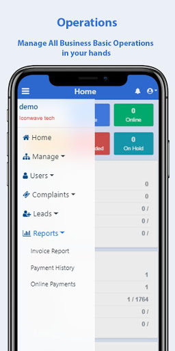 Iconradius customers can use this app for collection,ticket resolve,Sales Followup,New installations Iconradius allows ISP to create multiple resellers in single panel where reseller can login and they can manage their own Subscribers, Complaints, Enquiries, Packages, Reports, SMS, Email