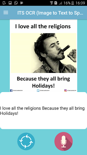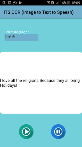 Image Text to Speech Synthesize with different settings and languages - Text recognition with camera - Text recognition with capture - Text recognition with capture from gallery Have fun with the ITS App