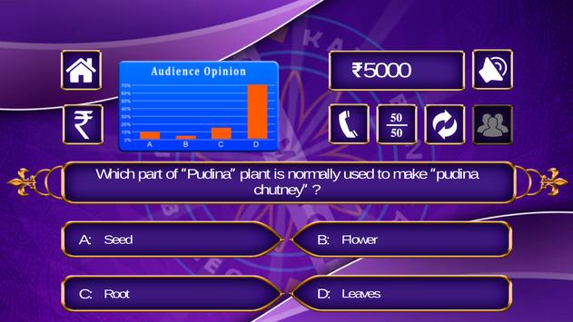 - There are four life lines like Phone To a Friend,Fifty-Fifty,Flip a Question & Audience Poll to help you.So you can solve more questions.