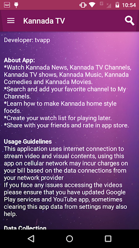 This application uses internet connection to stream video and visual contents, using this app on cellular network may incur charges on your bill based on the data connections from your network provider. This application works better on high speed internet due to the nature of streaming media.