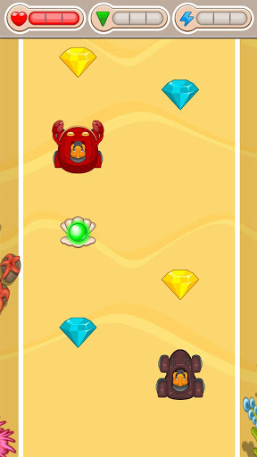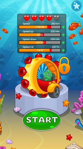 Your goal is to reach the finish line first, bypassing various obstacles, overtaking other racing cars, avoiding an accident and earning as many points as possible in the form of pearls and colorful crystals.