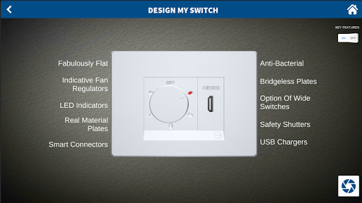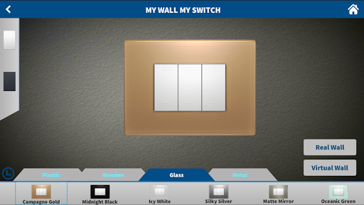 You can also select the wall color from the virtual color pallet available to see on which wall color the switch board suits the best. The user can then save the image of the wall with the customized switch board and he can either email it to himself.
