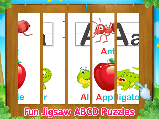 Recognising alphabet for kindergarten: let’s learn letters. This has many learning games for toddlers. It has letter learning, letter tracing, sounds and vocals, ABCD and upto z objects, Quizes, Trace all the capital letters and lower case letters, Pair up the letter With Right object.ts fun learning abc games for kids and for free! Its abc magic alphabets game- abc mágico abecedario - everyone will it! ABCD Alphabets puzzles - you have to solve jigsaw puzzles to make them A is for apple, A is for Ant, A is for Alligator and so on until Z. It is free for everyone!