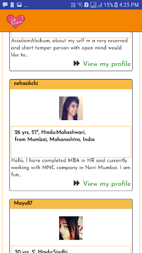 If you are looking for a Jeevansathi from a specific community like Bengali, Gujarati, Kannada, Marathi, Punjabi, Urdu, Malayalam, Hindi, Tamil, Telugu, Assamese, Marwari, Bhojpuri, Oriya, Konkani, Sindhi, Parsi or you are looking for your better half from specific religion like Hindu, Muslim, Christian, Sikh, Jain, Buddhist, visit the specific exclusive matchmaking section on this app.