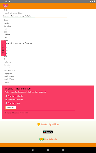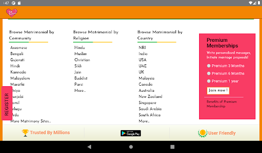 We have retained a similar feel on our matrimony APP as on our website to ensure ease of use and comfort of our users in finding their better half.