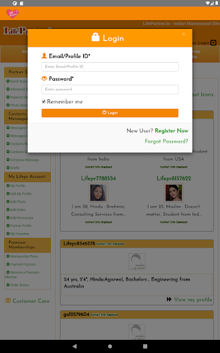 The LifePartner.in App is free to download. Register FREE Matrimony Profile now and Search for your jeevansathi on Life Partner App.