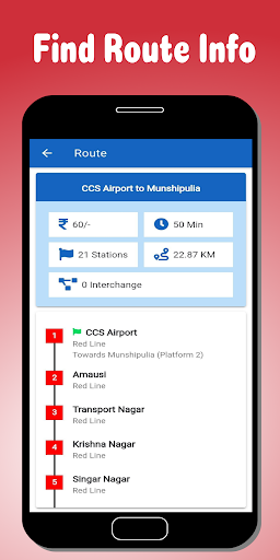 1. Show route : - Lucknow Metro App provides detailed route information including distance between stations, timings and fare.