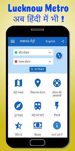 Lucknow Metro (लखनऊ मेट्रो) App provides the users a lot of useful information like Route & Timing Between Stations, Station Navigation, Station Info, Nearest metro station, Tour Guide, Metro Map, Recharge facility & lot more that helps in using the Lucknow Metro Services. Lucknow Metro App is available in English as well as in Hindi language.