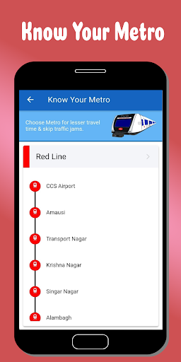 6. Know Your Metro :- Lucknow Metro App gives information about the available stations on each line. Currently there are two lines ( Red & Blue)in which Red line is functional and Blue line is under construction.