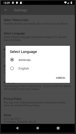 Small size compared to most of the Malayalam Calendars in PlayStore.