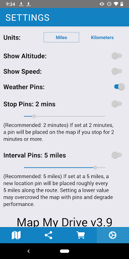 You can create multiple routes and have complete control over when you want to start and stop tracking for each route. Also for each route, you can see how far you traveled, how long it took you, see where you stopped and for how long, see what the weather was like along your route, the altitude along the route, and add custom pins to the map that can include images. In addition, Map My Drive can continually track your location (with your consent, of course) in the background freeing you up to use your phone for other purposes.
