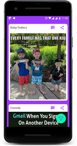 Memes for different category. Users will be able to post / see memes, funny images etc.