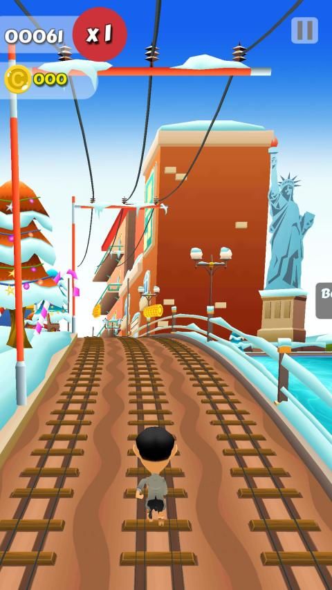 It is very easy to control, run as fast as you can, rush in the endless city scene. Be careful to avoid carrier, collect more and more coins and buy more props.