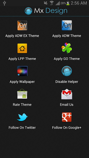 Its time to make something new so we did it the Mx Design All Launcher theme includes the perfect theme for the following launchers in just one bundlego launcher ExApex LauncherADW LauncherADW + Launcherand also includes various HD wallpapers......please rate us ..--This app is ad supported.