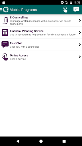 • Immediately and confidentially chat with a counsellor or book a service in-app